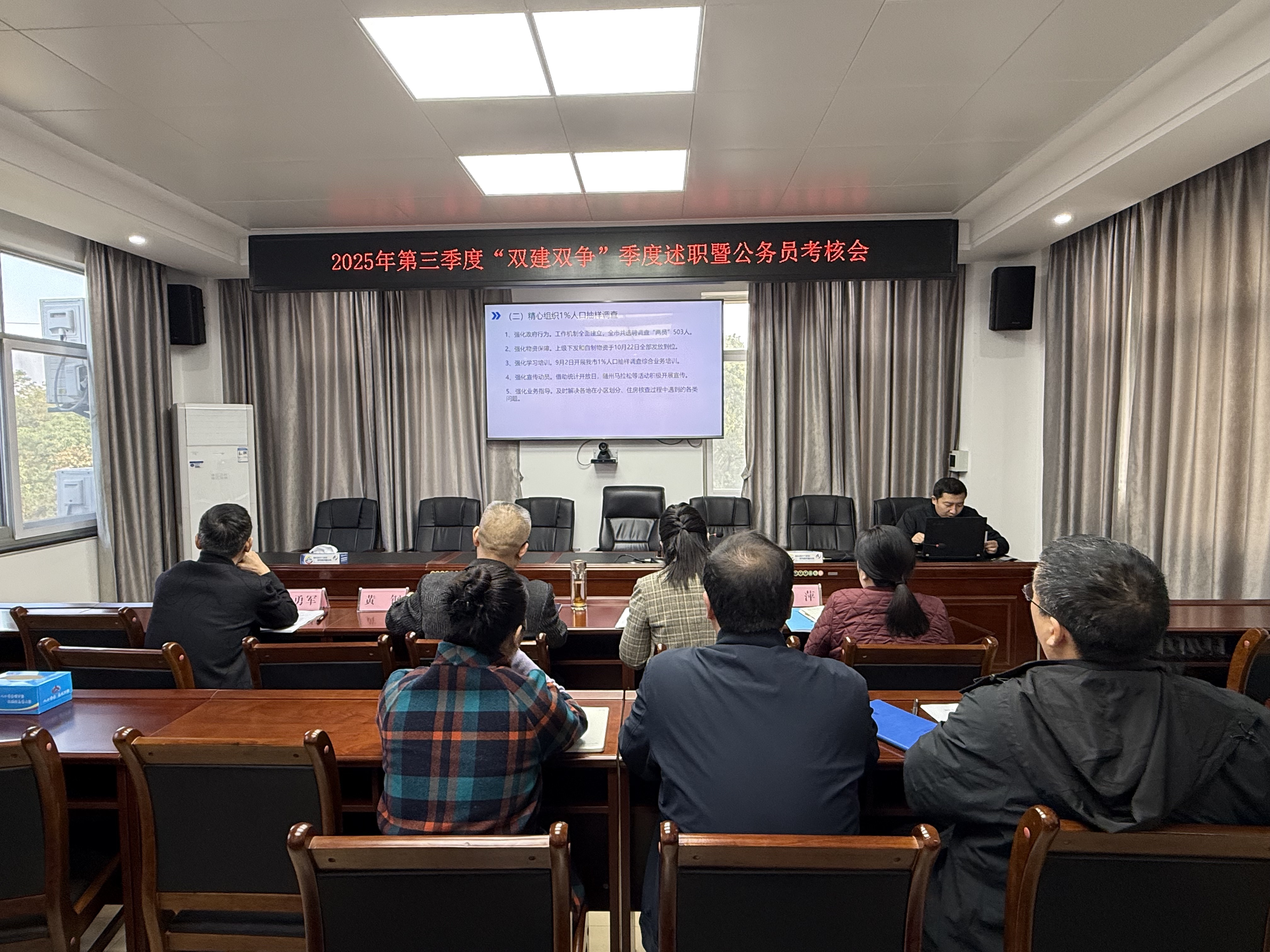 10月31日上午,市统计局举行三季度“双建双争”述职述评活动。本次述评分为现场汇报、领导点评和全局互评三个环节。全体干部职工系统总结三季度工作成效,深入剖析当前形势与问题不足,并紧扣高质量发展主线,积极谋划下阶段工作重点。