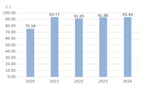 图8 2020-2024年全省年末固定互联网宽带接入用户数