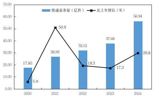 注:2024年部分邮政快递企业调整快递业务口径,快递业务增速按可比口径计算。